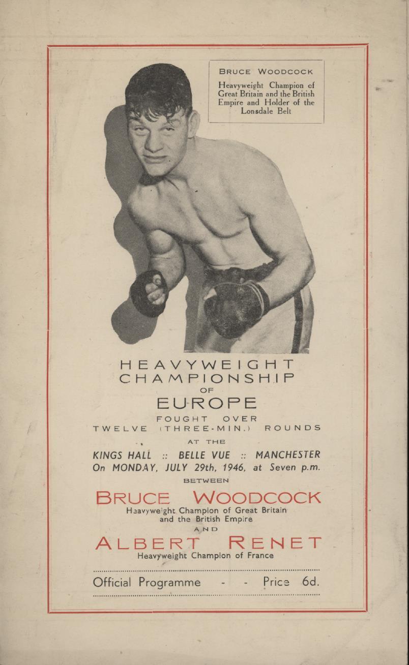 BRUCE WOODCOCK V ALBERT RENET 1946 BOXING PROGRAMME