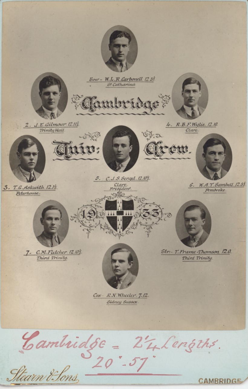 CAMBRIDGE UNIVERSITY CREW 1933 CABINET PHOTOGRAPH