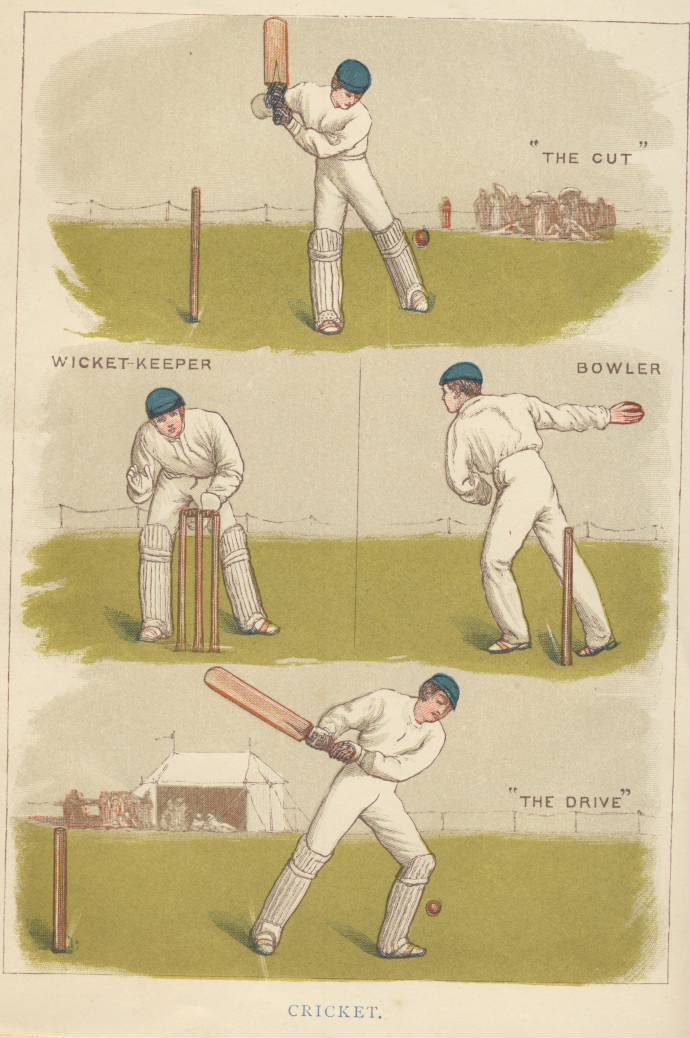 Compendium of sports and non sporting pastimes illustrated throughout with line drawings of apparatus, equipment and players in action and diagrams of boards, pitches, moves and tactics and a full colour frontispiece of cricketers in action.