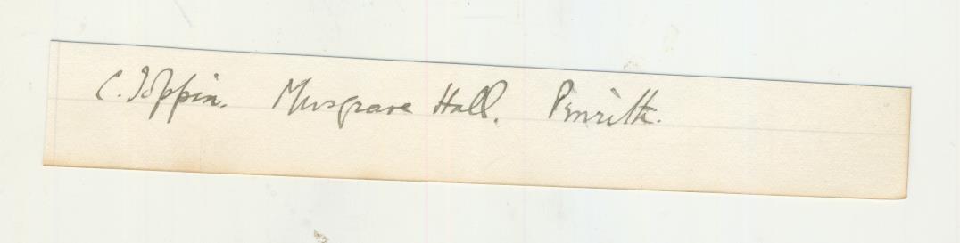 Original ink autograph of Charles Toppin, who played cricket for Cambridge University (blue 1885-7) and Worcestershire in pre-first-class years. This autograph came from a visitors book from the early 1890s at Heath House in Shropshire where many country house cricket matches were hosted (including against the MCC and Free Foresters). Toppin was the cricket master at Malvern College for many years, fostering many great cricketing talents. Two of his sons played for Worcestershire.