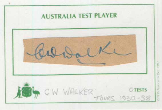 Small signed piece of paper laid down to special "Australia Test Player" card. Although Walker came on two Ashes tours he never played a Test match.
