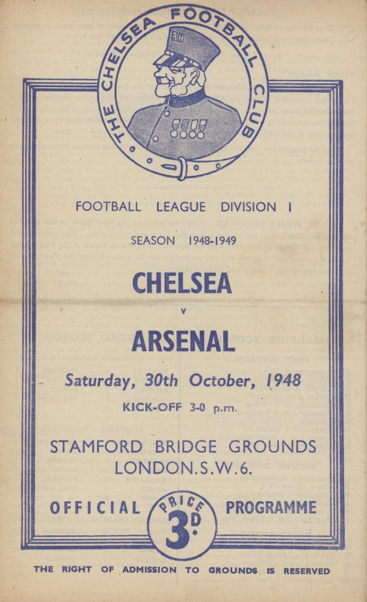 Official match programme for the Division 1 game against Arsenal at Stamford Bridge on October 30th 1948.