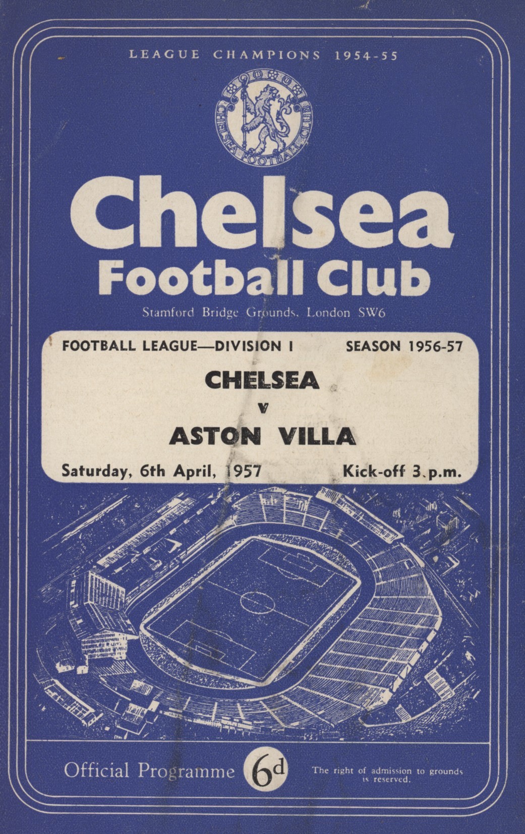 CHELSEA V ASTON VILLA 1956-57 FOOTBALL PROGRAMME