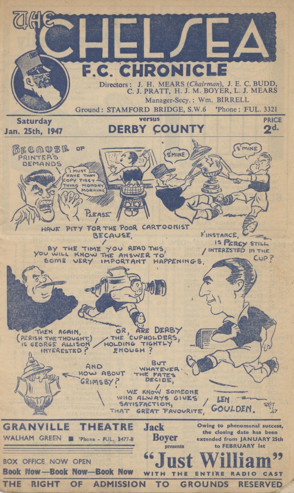 CHELSEA V DERBY COUNTY 1946-47 (F.A. CUP) FOOTBALL PROGRAMME