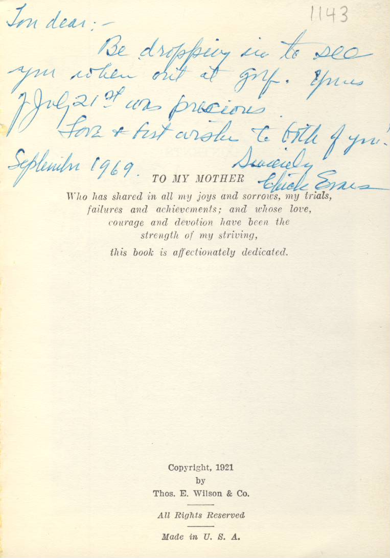 Sporting memoir from Chick Evans, a leading amateur golfer of the early 1900's who won the US Open and the US amateur Championship in the same year in 1916.