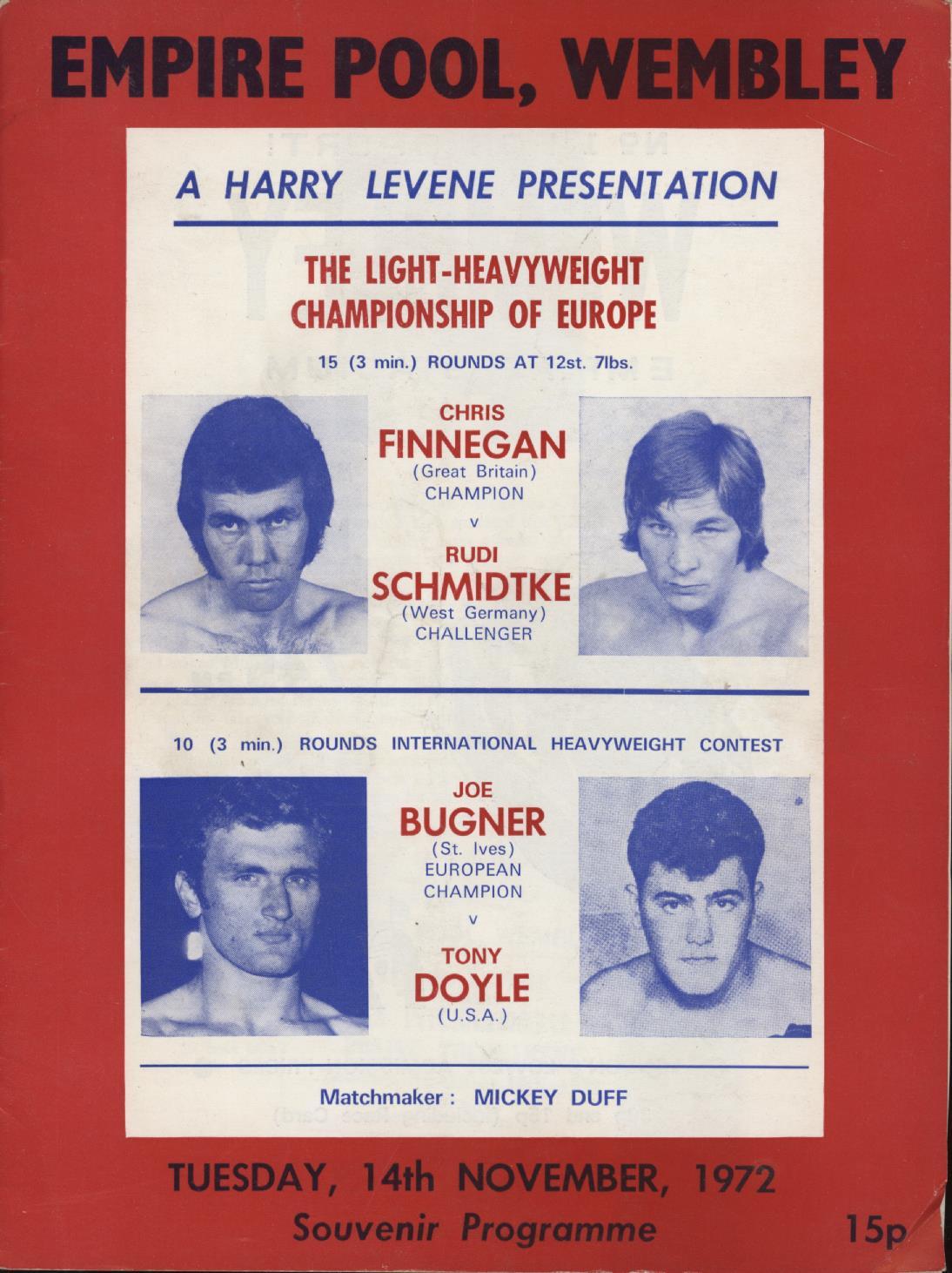 CHRIS FINNEGAN V RUDI SCHMIDTKE 1972 BOXING PROGRAMME