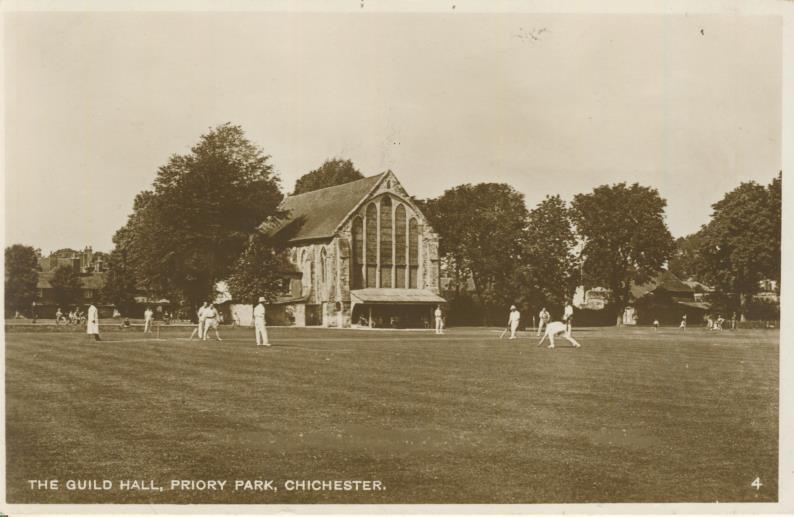 Cricket » Cricket Postcards » Cricket Venues » CRICKET AT THE GUILDHALL, PRIORY PARK, CHICHESTER - POSTCARD