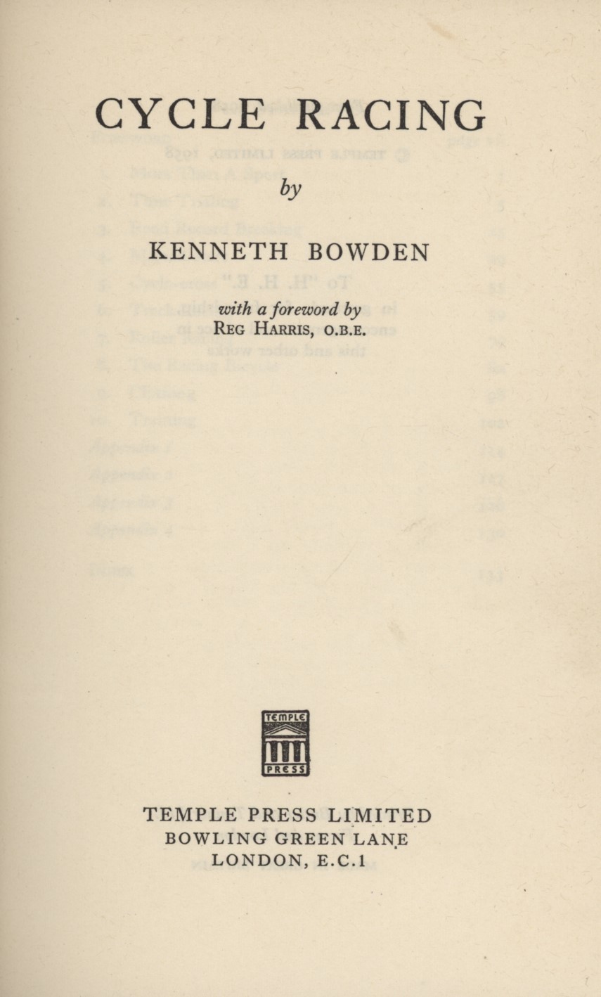 The first book to be written in English, on the subject, embracing time trialing, massed-start road racing and track racing. With a foreword by Reg Harris (1920-92), winner of the World Amateur Sprint title in 1947.
