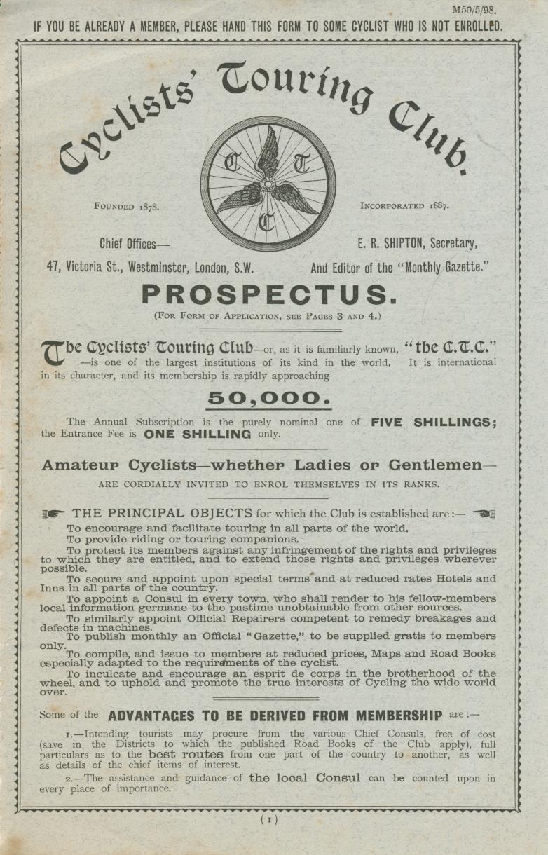 CYCLISTS' TOURING CLUB PROSPECTUS 1898