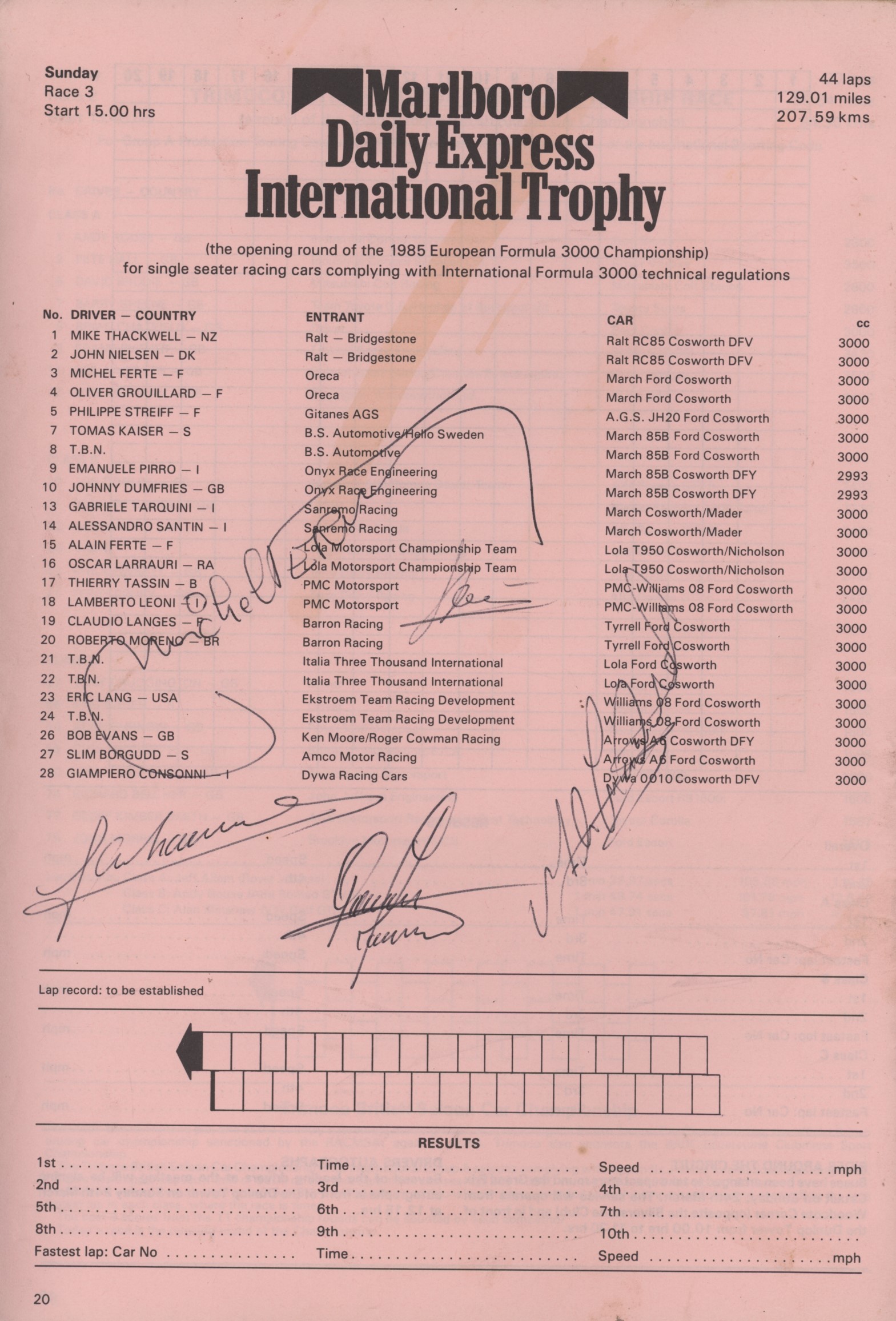 DAILY EXPRESS INTERNATIONAL TROPHY (FORMULA 3000) 1985 OFFICIAL PROGRAMME