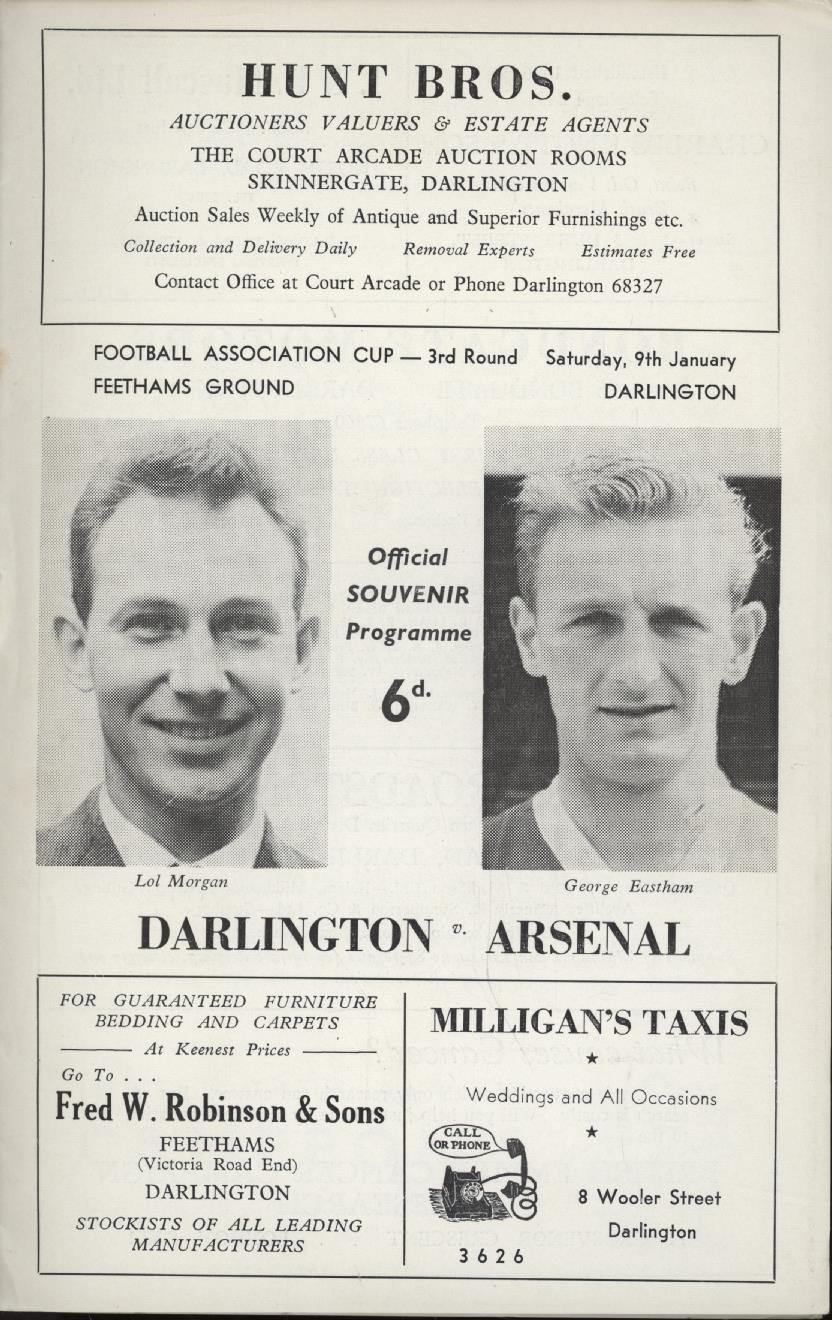 DARLINGTON V ARSENAL (FA CUP 3RD ROUND) 1964-65 FOOTBALL PROGRAMME
