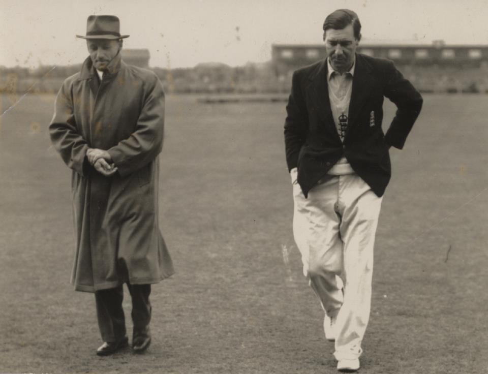 Original photograph of the two cricket captains leaving the field during the 1948 Ashes series.