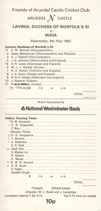 DUCHESS OF NORFOLK'S XI V INDIA 1982