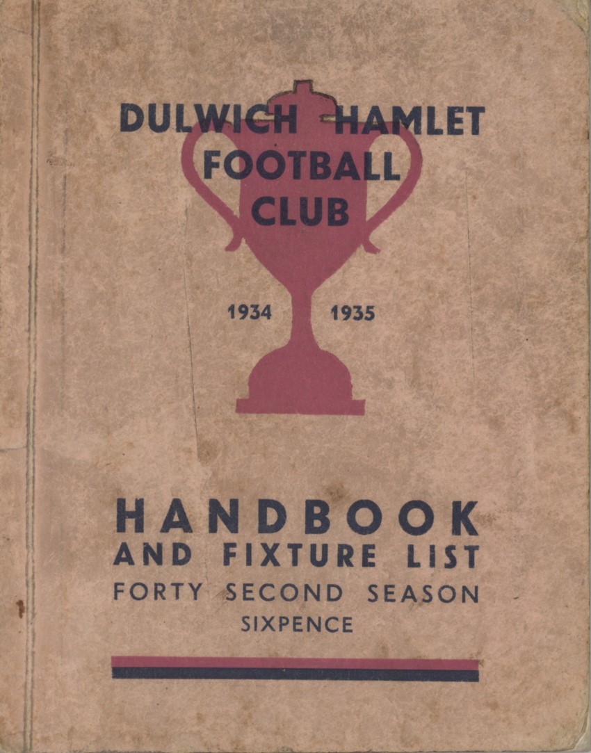 DULWICH HAMLET FOOTBALL CLUB HANDBOOK AND FIXTURE LIST 1934-35