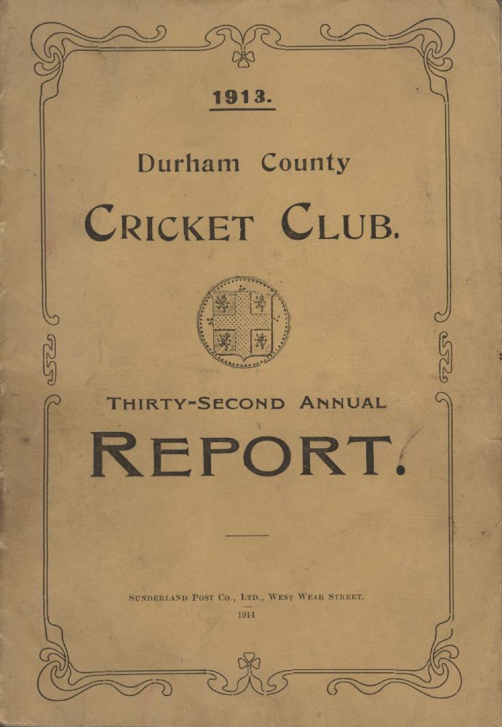 Cricket » Cricket County Yearbooks » Durham Yearbooks » DURHAM CRICKET CLUB THIRTY-SECOND ANNUAL REPORT - 1913