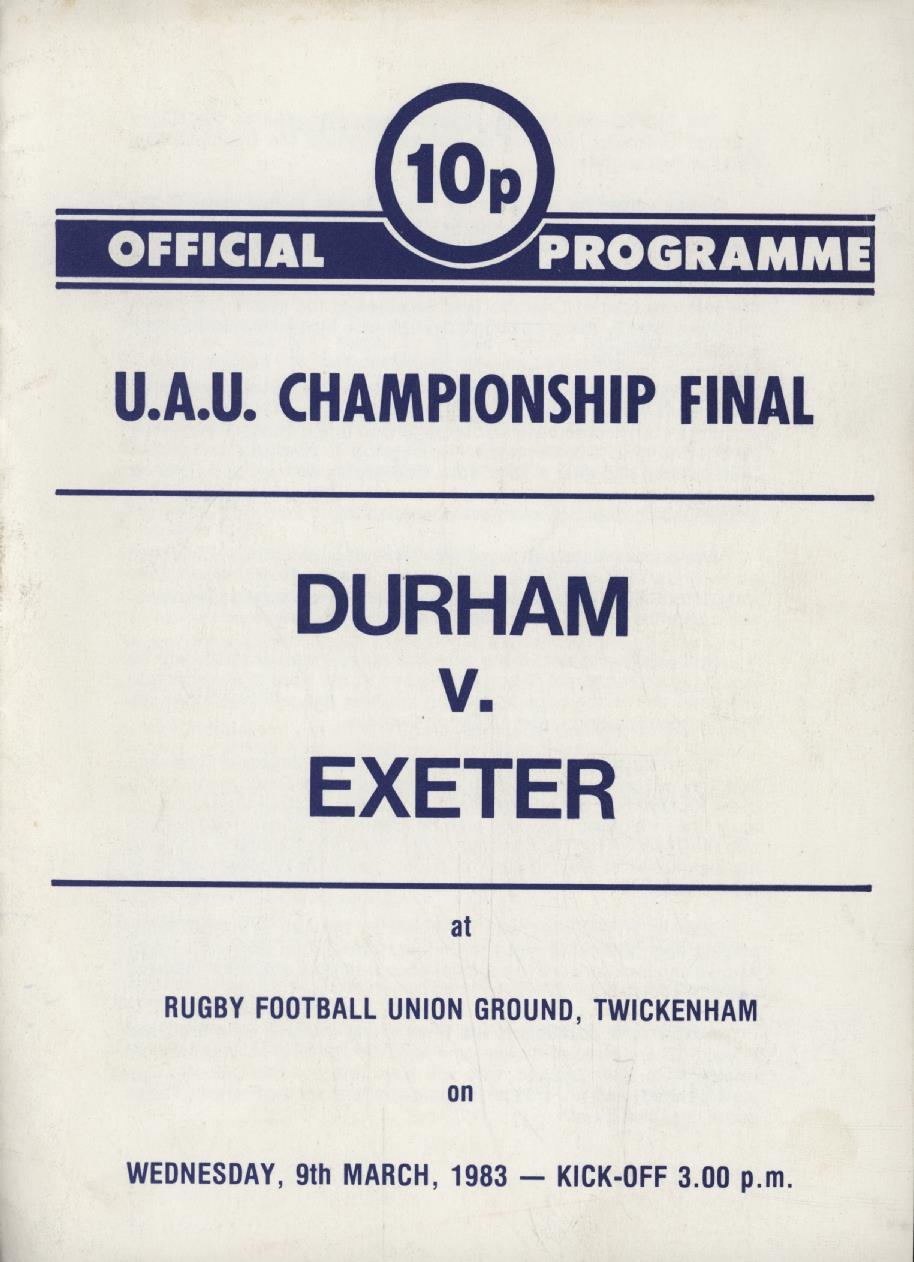 DURHAM V EXETER (U.A.U. CHAMPIONSHIP FINAL) 1983 RUGBY UNION PROGRAMME