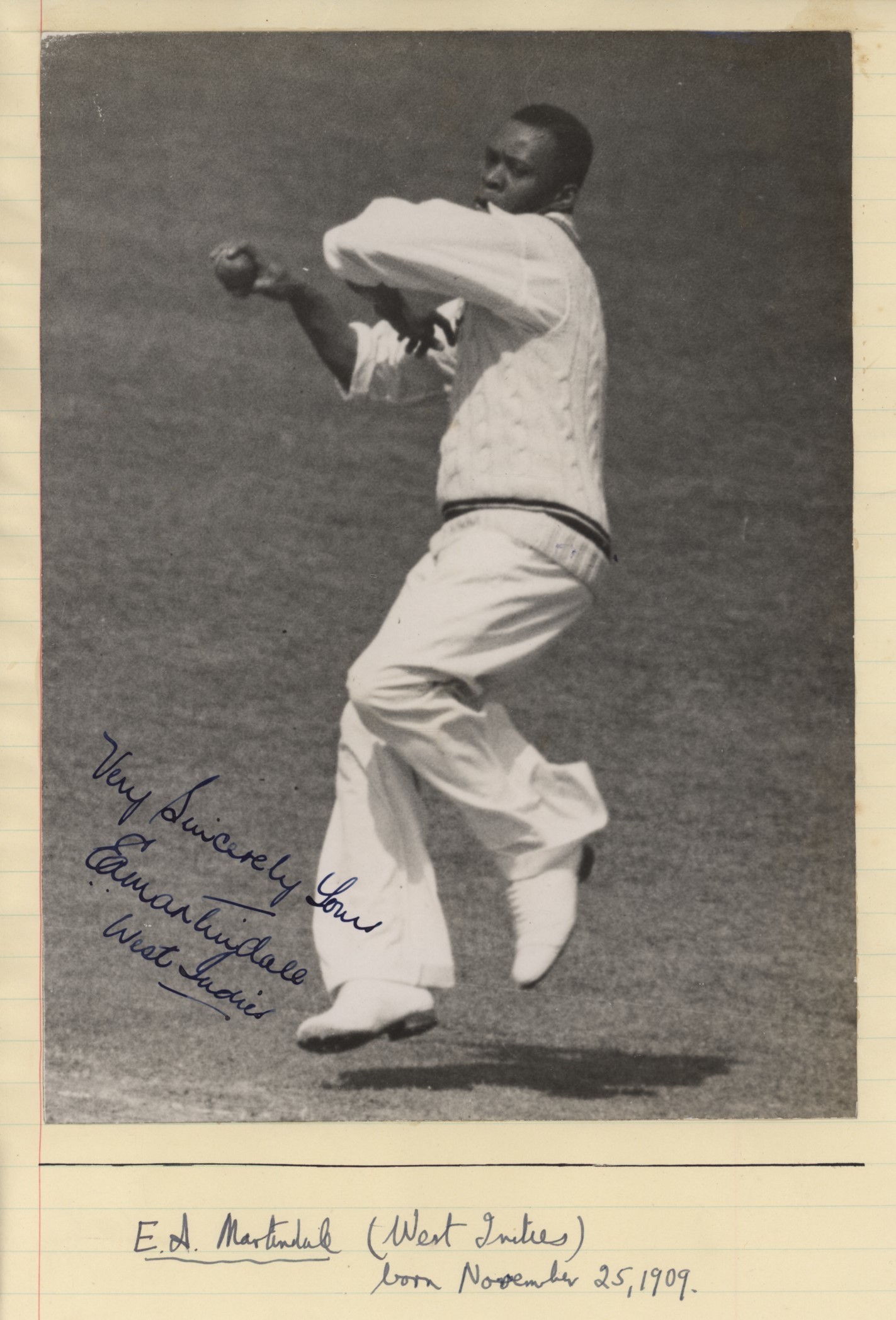 Cricket » Cricket Photographs » Cricket Players Photographs » E.A. MARTINDALE (WEST INDIES) SIGNED CRICKET PHOTOGRAPH