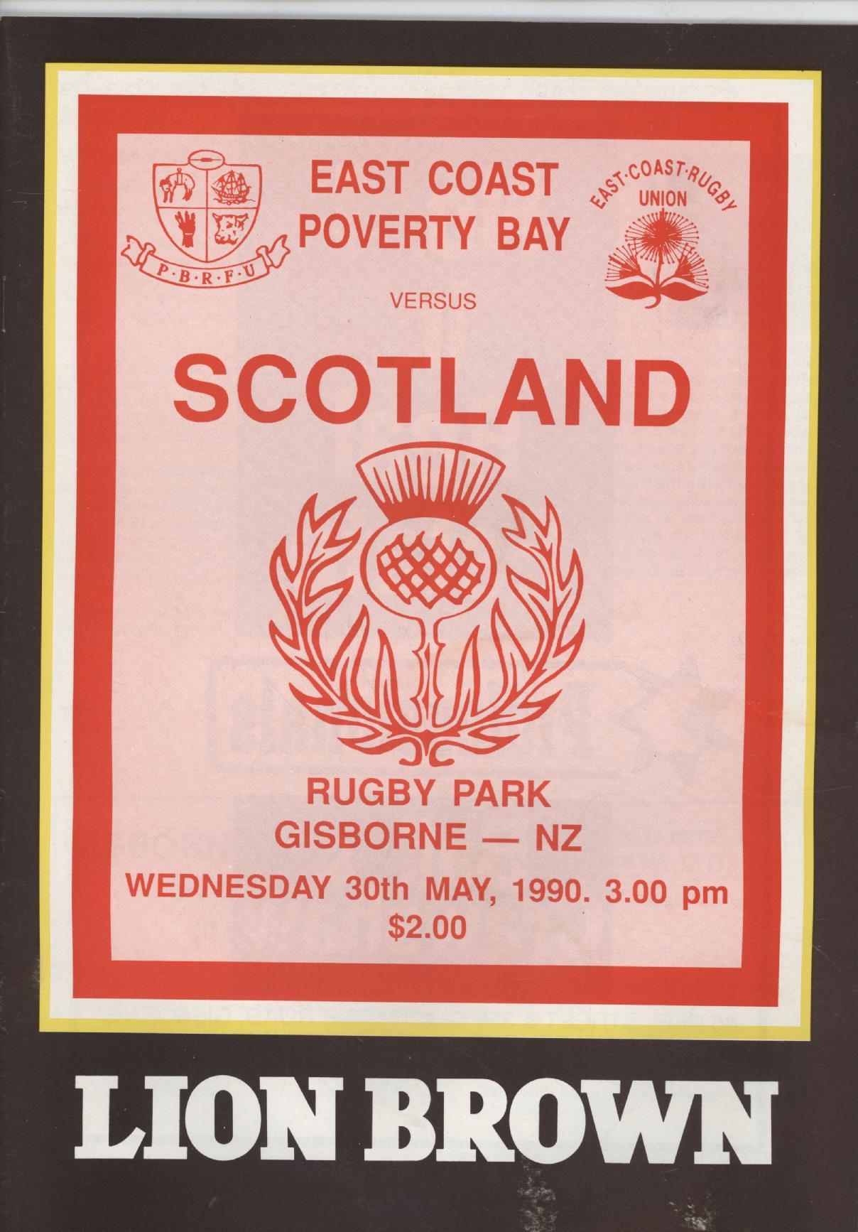 EAST COAST / POVERTY BAY V SCOTLAND 1990 RUGBY PROGRAMME