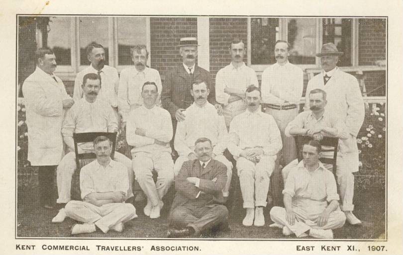 Original cricket postcard. Photograph produced for Kent Commercial Travellers' Association of the 1907 East Kent XI.