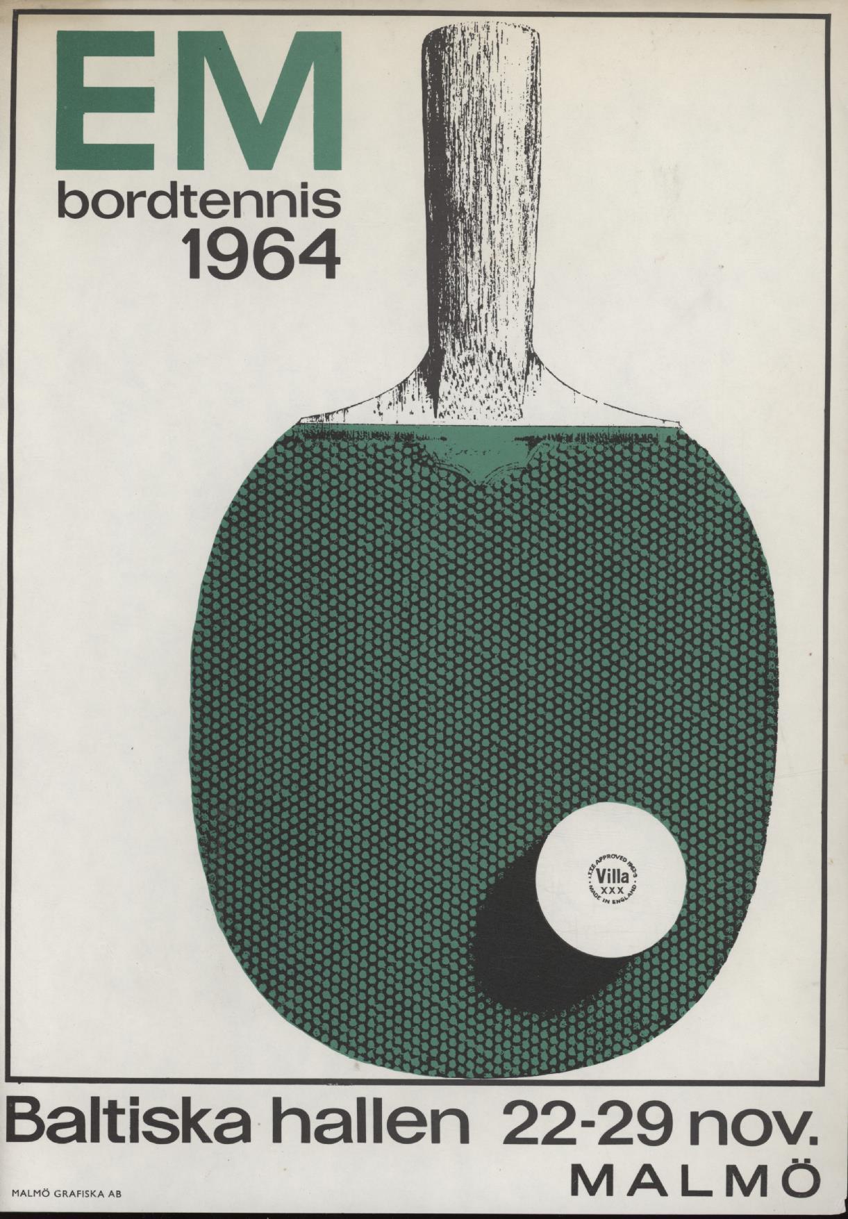 EM BORDTENNIS 1964 (EUROPEAN TABLE TENNIS CHAMPIONSHIPS 1964) TOURNAMENT POSTER
