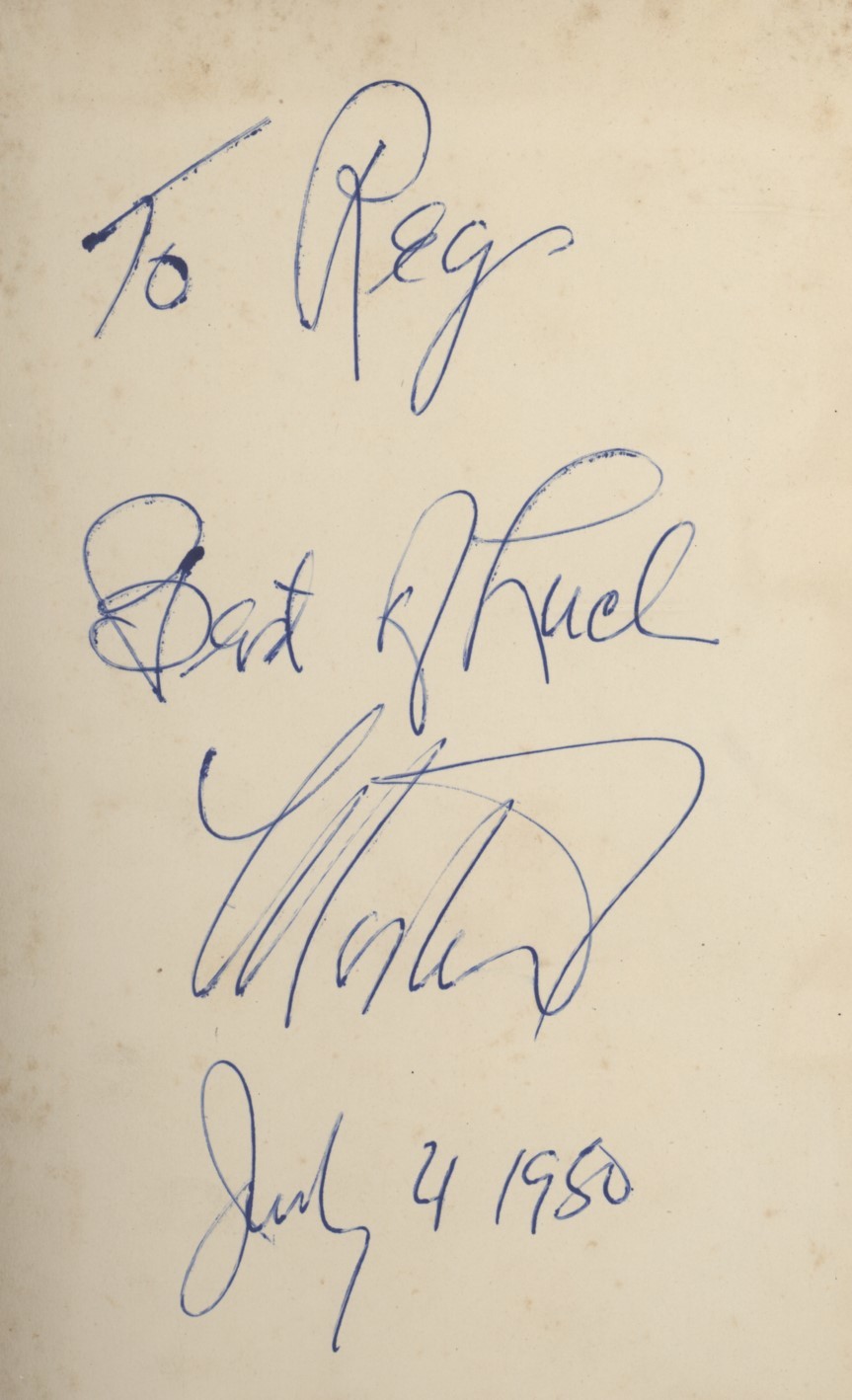 8vo. c300pp. Leather-covered boards. Boards lightly rubbed to edges. The printed title and dedication to the front is badly faded but still just readable. Good condition. Reg Gutteridge's copy, with a handwritten second dedication 'To Reg' inscribed to inside cover and signed by the promoters (dated 1980).
