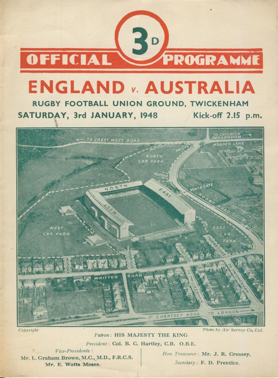 ENGLAND V AUSTRALIA 1948 RUGBY PROGRAMME