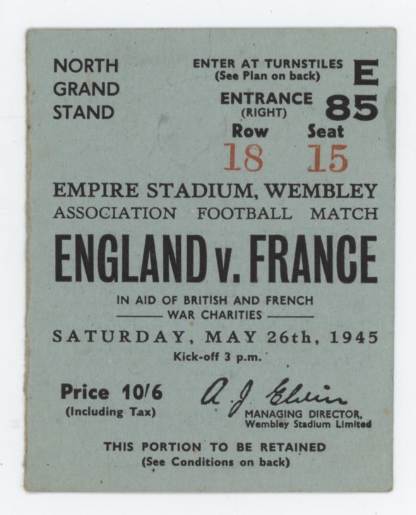 Original ticket for the match played at Wembley on May 26th, 1945.