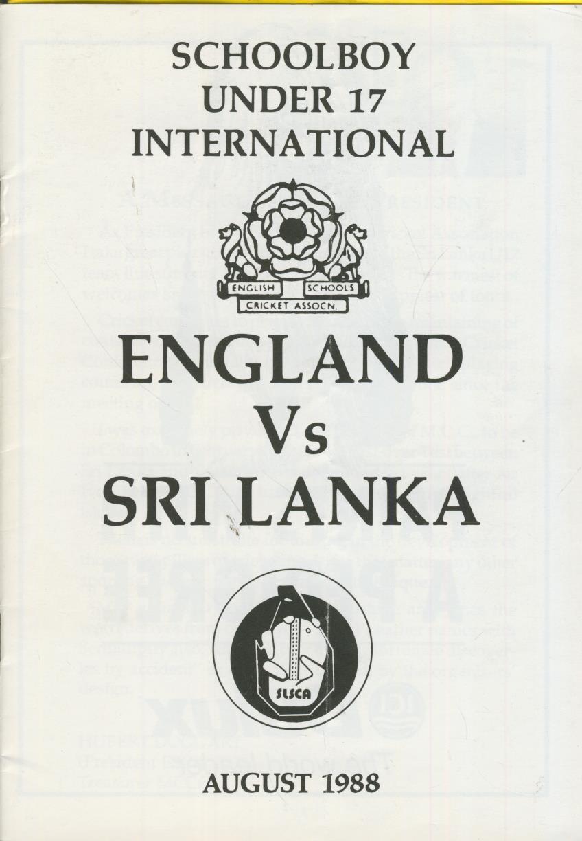 Cricket » Cricket Programmes » Other Cricket Matches » ENGLAND V SRI LANKA (UNDER 17) 1988 CRICKET PROGRAMME