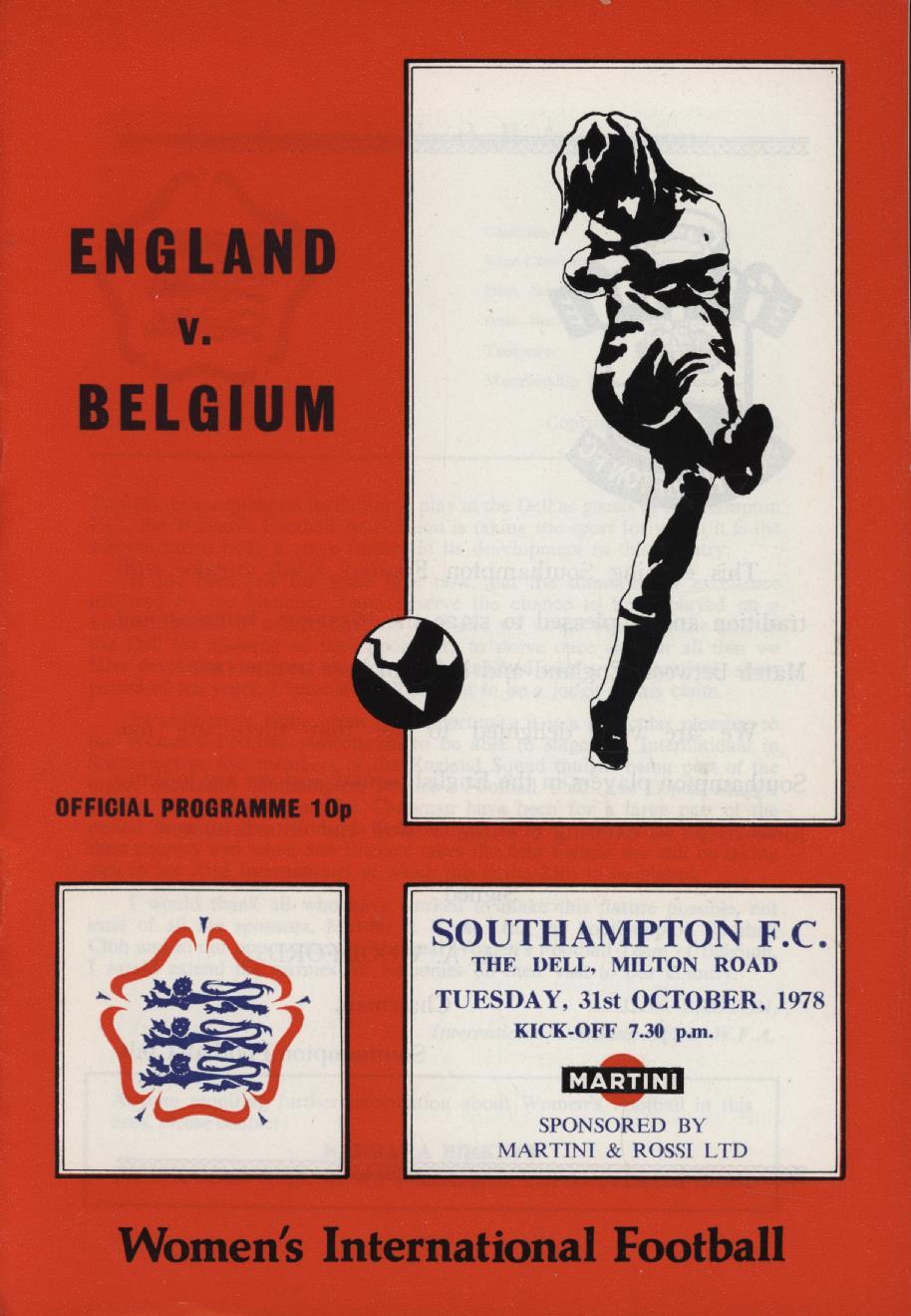 ENGLAND V BELGIUM (WOMEN'S INTERNATIONAL) 1978 FOOTBALL PROGRAMME