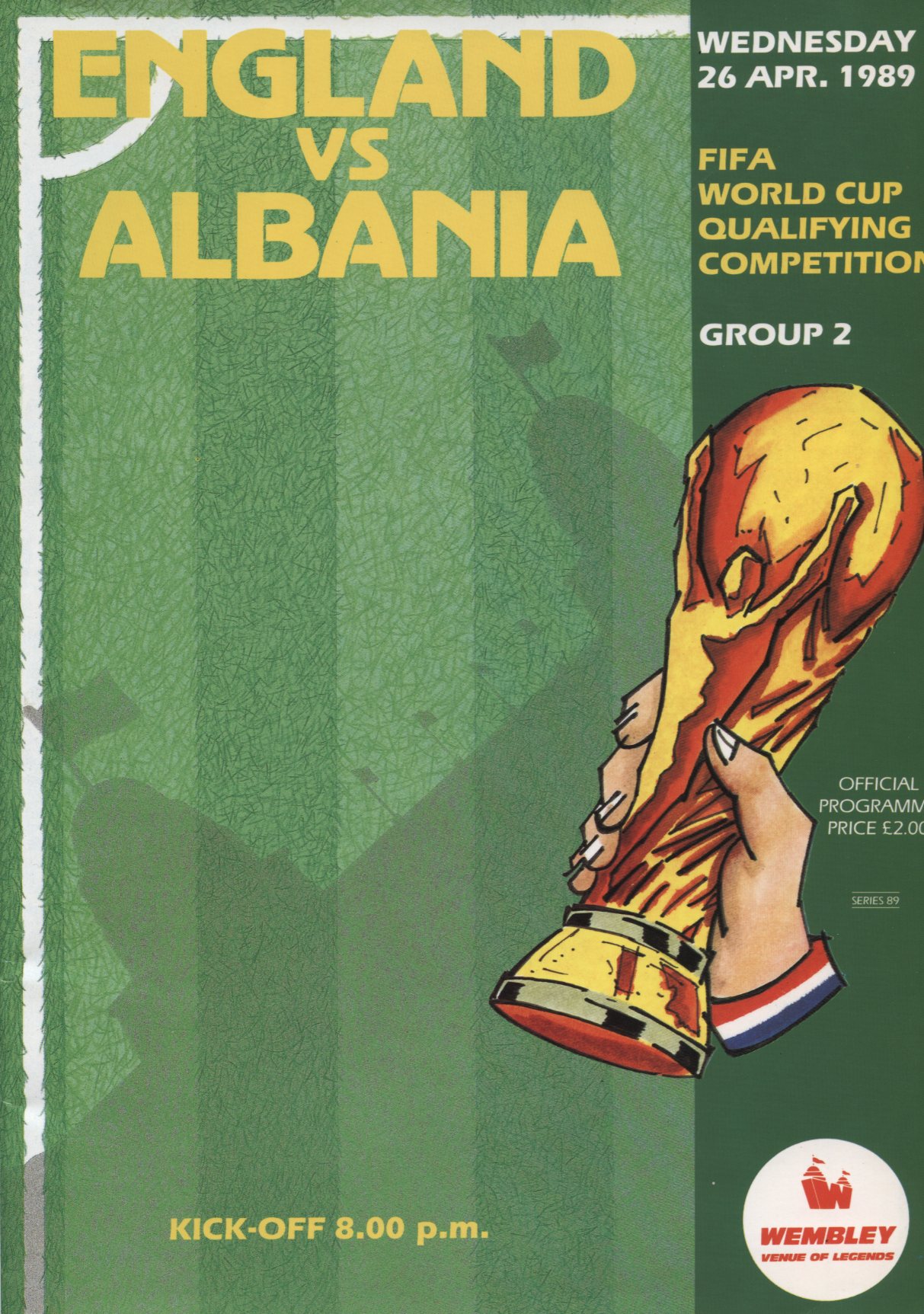 ENGLAND V ALBANIA 1989 (WORLD CUP QUALIFIER) FOOTBALL PROGRAMME
