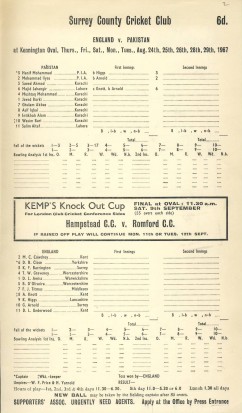 ENGLAND V PAKISTAN 1967 (OVAL) CRICKET SCORECARD