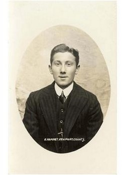 Football postcard. Real photograph. Individual head and shoulders, in suit. Hammett joined Newport in 1912 and later became an England Rugby international. White border. Postally unused. Fine. VERY RARE.