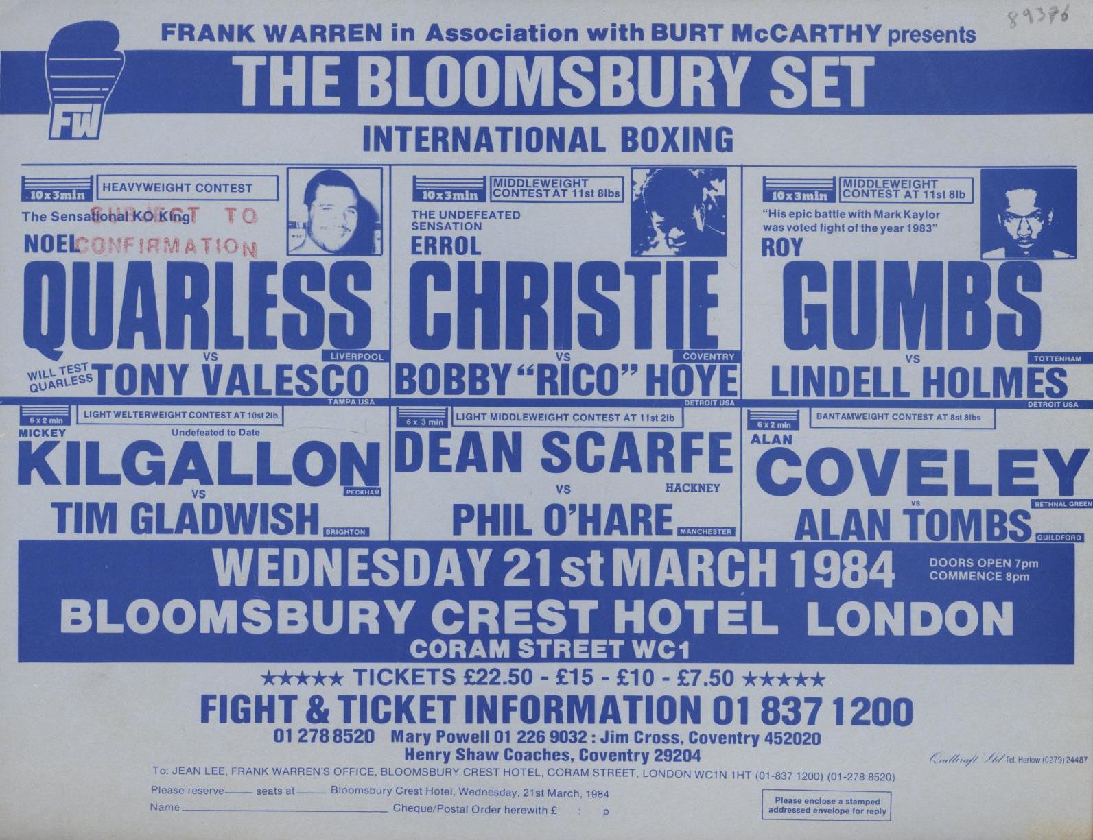 ERROL CHRISTIE V BOBBY HOYE 1984 (BLOOMSBURY) BOXING FLYER