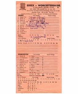 ESSEX V WORCESTERSHIRE 1957 CRICKET SCORECARD