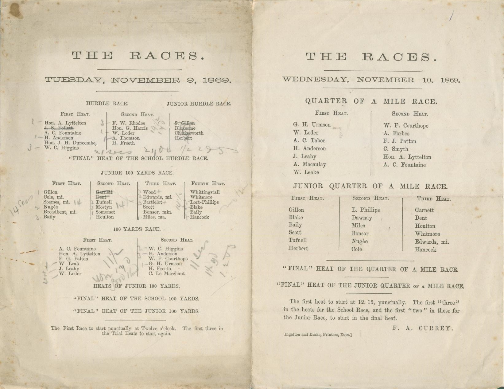 Other Sports » Olympics & Athletics » Olympics & Athletics Programmes » Other Athletics Programmes » ETON COLLEGE ATHLETICS PROGRAMME 1869 - FEATURING ARTHUR LYTTELTON AND LORD HARRIS