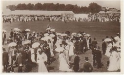 Real photograph of Eton v Harrow at Lord's, with mention of heavy police presence against suffragettes to reverse. Postally used. White border. Very good.