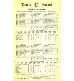Cricket » Cricket Scorecards » Schools/Universities » ETON V HARROW 1906 CRICKET SCORECARD