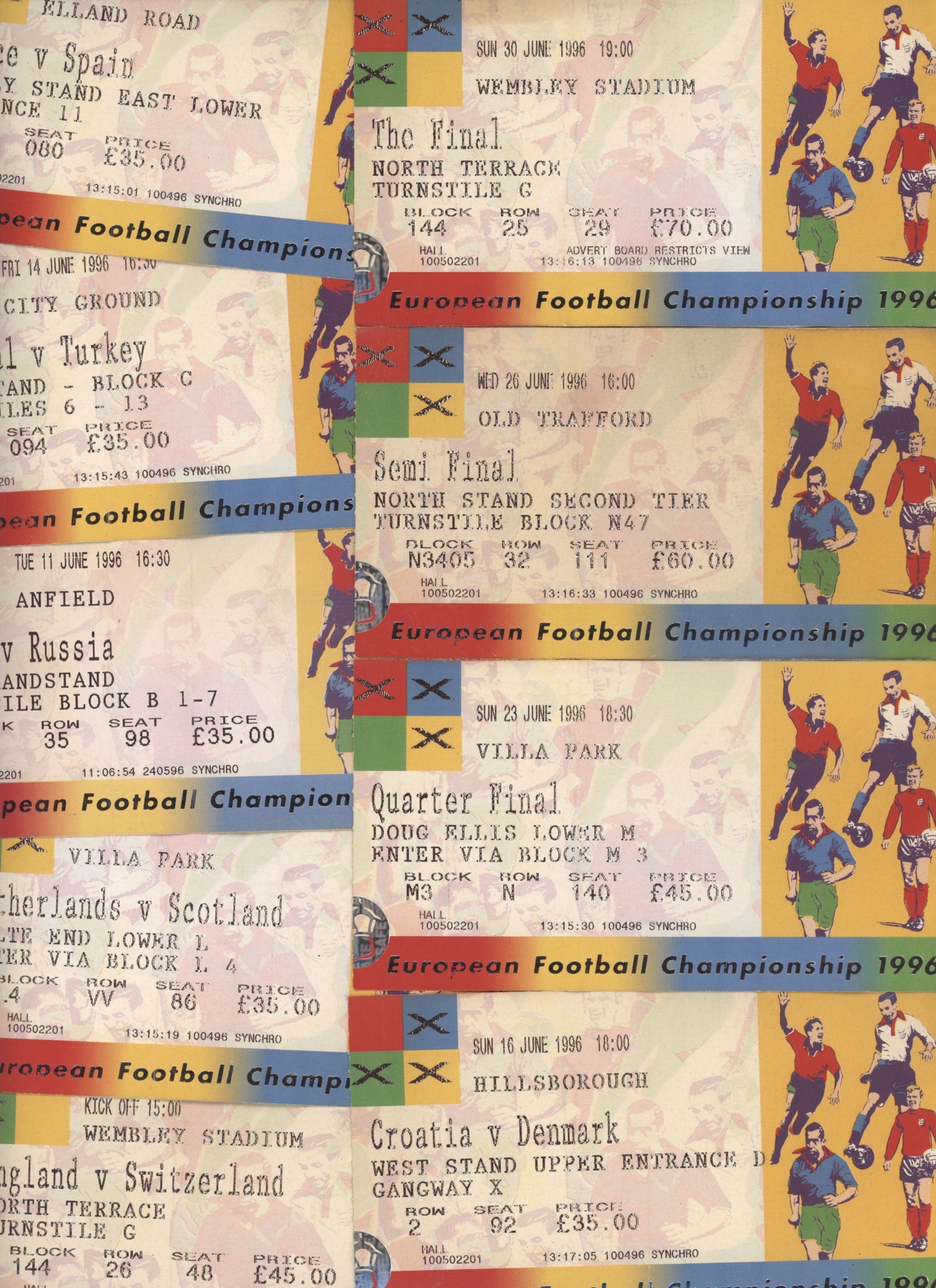 Football » Football Memorabilia » Tickets & Passes » EUROPEAN FOOTBALL CHAMPIONSHIP 1996 - GROUP OF 9 TICKETS (INCLUDING FINAL)