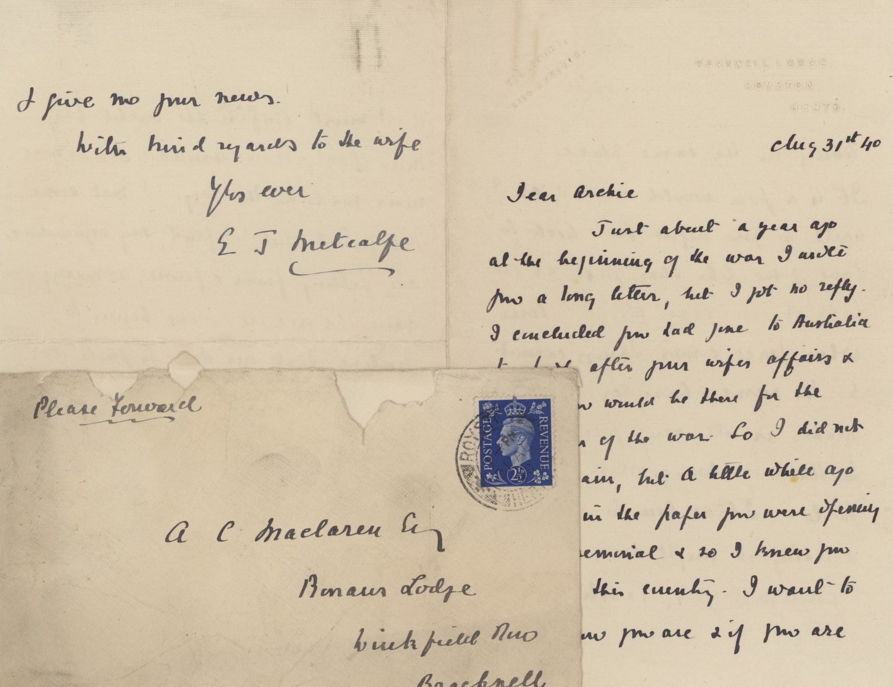 Cricket » Cricket Autographs » Cricket Letters » EVELYN METCALFE (QUEENSLAND) 1940 CRICKET LETTER TO ARCHIE MACLAREN