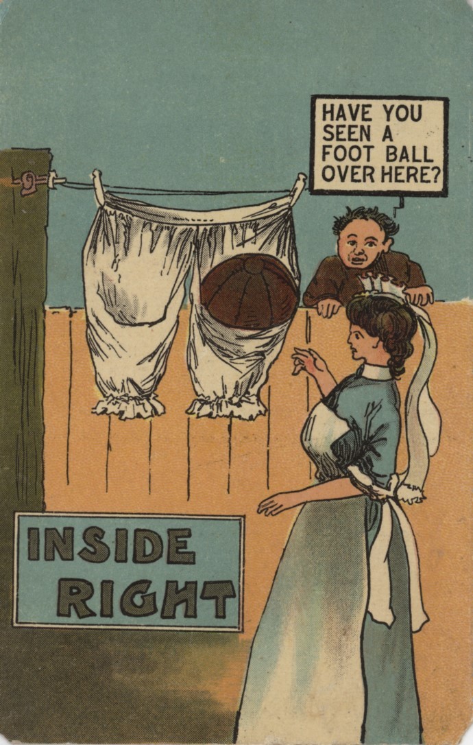 Original football-themed cartoon postcard from 1910. Postally used and stamped. Corners are very slightly trimmed. Good condition.