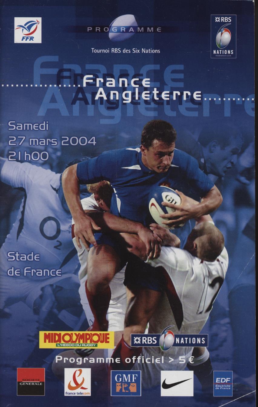 FRANCE V ENGLAND 2004 RUGBY PROGRAMME