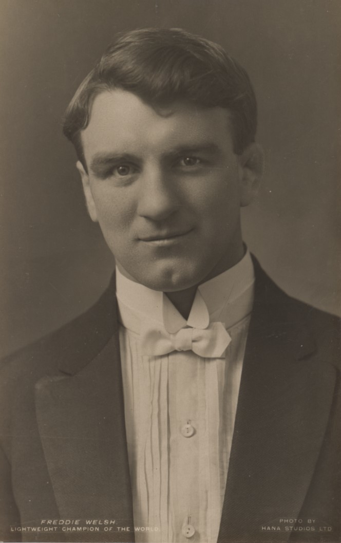 Original postcard of Freddie Welsh, the great Lightweight Champion of the World, who spent most of his career in America and tragically died in poverty in 1927. Real photographic image. Postally unused. Very good condition.