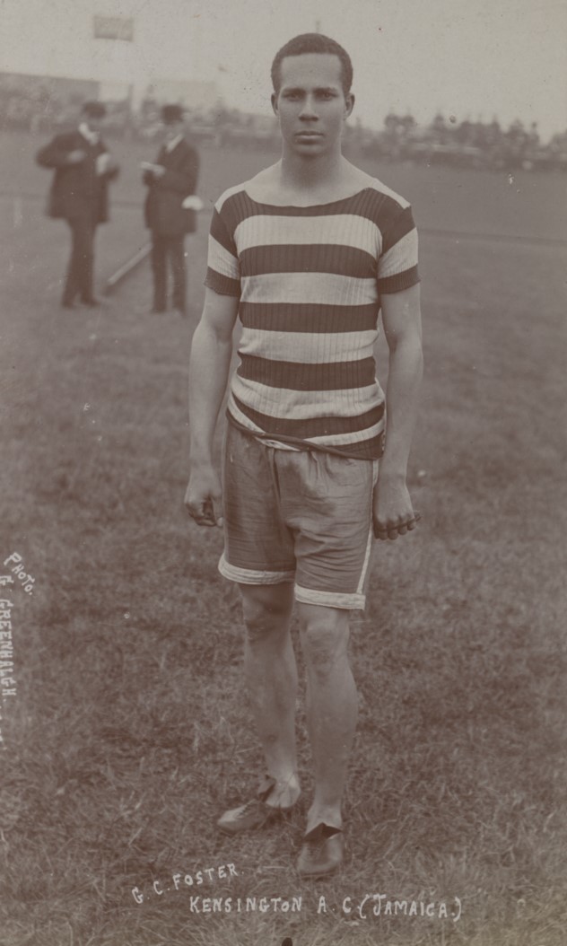 Original real photographic postcard of the Jamaican sprinter G.C. Foster, taken while representing Kensington Athletics Club. Despite being a leading sprinter of the time Foster was denied entry to the 1908 Olympics as Jamaica was not an affiliated member of the IOC. He went on to represent Jamaica at cricket, including playing 3 games against the MCC in 1910-11. In later life he was an influential athletics coach and the G.C. Foster College of Physical Education and Sport in Spanish Town was named in his honour. He died in 1966.