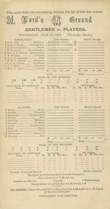 GENTLEMEN V PLAYERS 1930 CRICKET SCORECARD