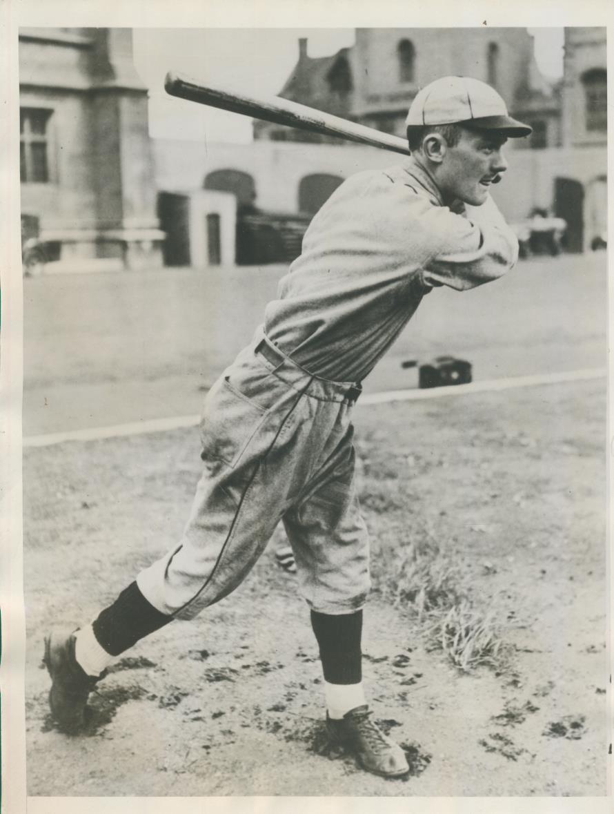 Original Press photograph of George Lott, the great American tennis player, playing baseball while a student at the University of Chicago in 1929. He was one of the leading batsmen in the collegiate league.