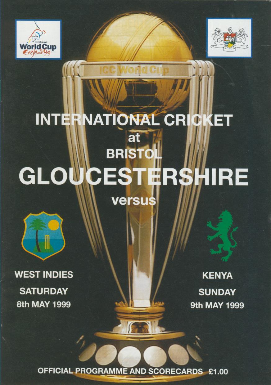 Cricket programme for the two World Cup warm up matches between Gloucestershire and West Indies and Kenya, played on consecutive days - May 8-9, 1999.
