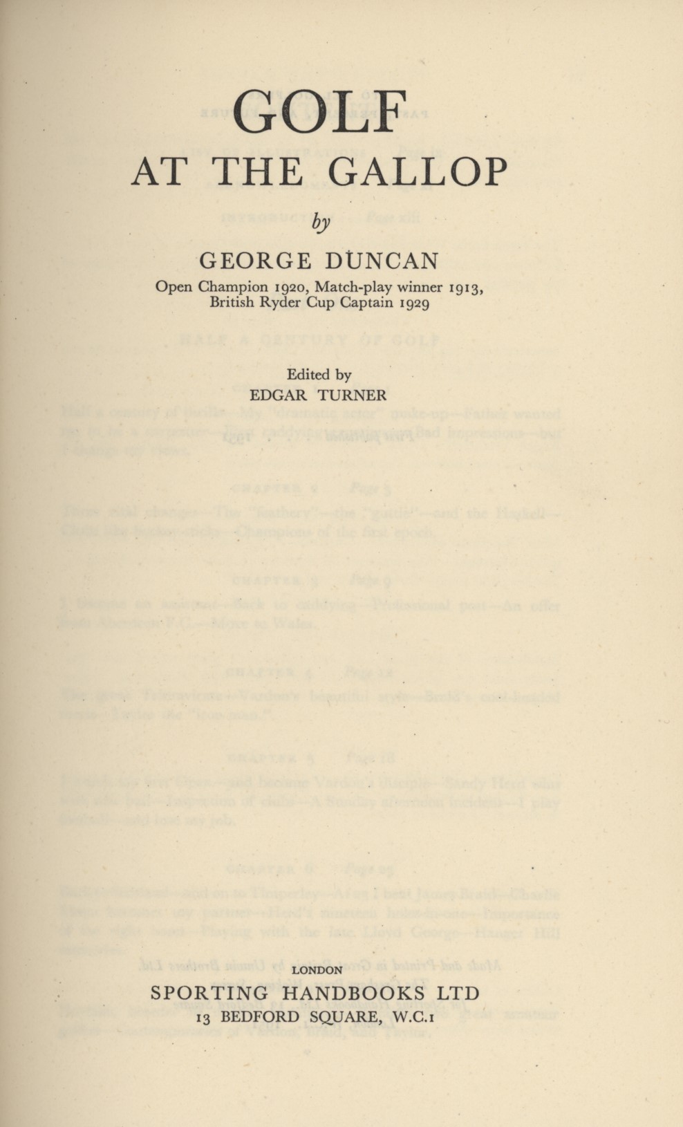 The autobiography of George Duncan, Open Champion 1920 and British Ryder Cup captain 1929. The last 80 pages of this book constitute an instructional section.