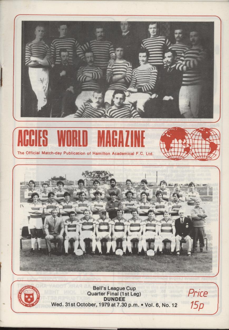 HAMILTON ACADEMICALS V DUNDEE 1979-80 FOOTBALL PROGRAMME