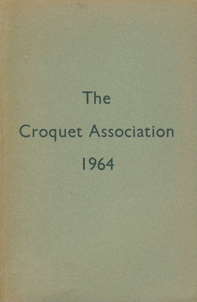 Alongside the monthly Croquet Association Gazette, the Association published a yearly handbook from the early 1900's. More a reference guide than the Gazette the contents vary from year to year but generally feature the laws of croquet with updates and revisions, the committee members of the association, medal results for the prior year and the membership roll with handicaps. This copy a single volume from 1964