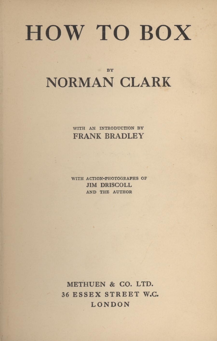Boxing instructional, with photographic illustrations. The author was an accomplished amateur fighter and senior administrator.
